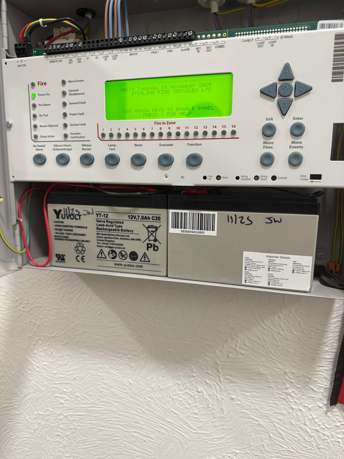 Willow Fire & Security carried out a 6-month fire alarm maintenance service at a residential building in Mitcham, Surrey, as part of a planned fire safety compliance programme. The service included full testing of the fire alarm control panel, inspection of standby batteries and power supplies, and verification of system status and fault monitoring.